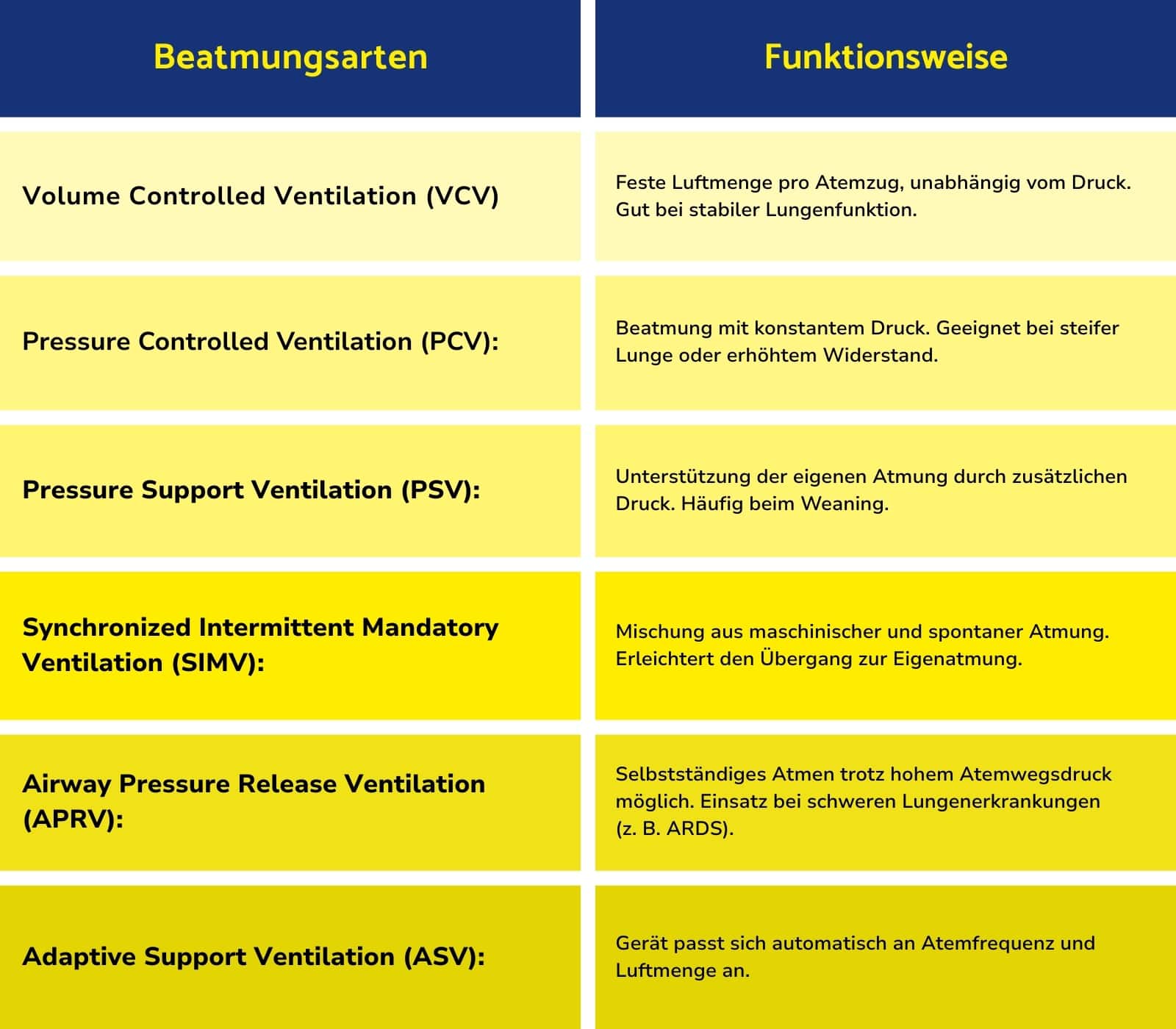 Die richtige Auswahl des Modus ist wichtig, um eine gute Sauerstoffversorgung zu sichern, die Lunge zu schonen und die Entwöhnung zu erleichtern.